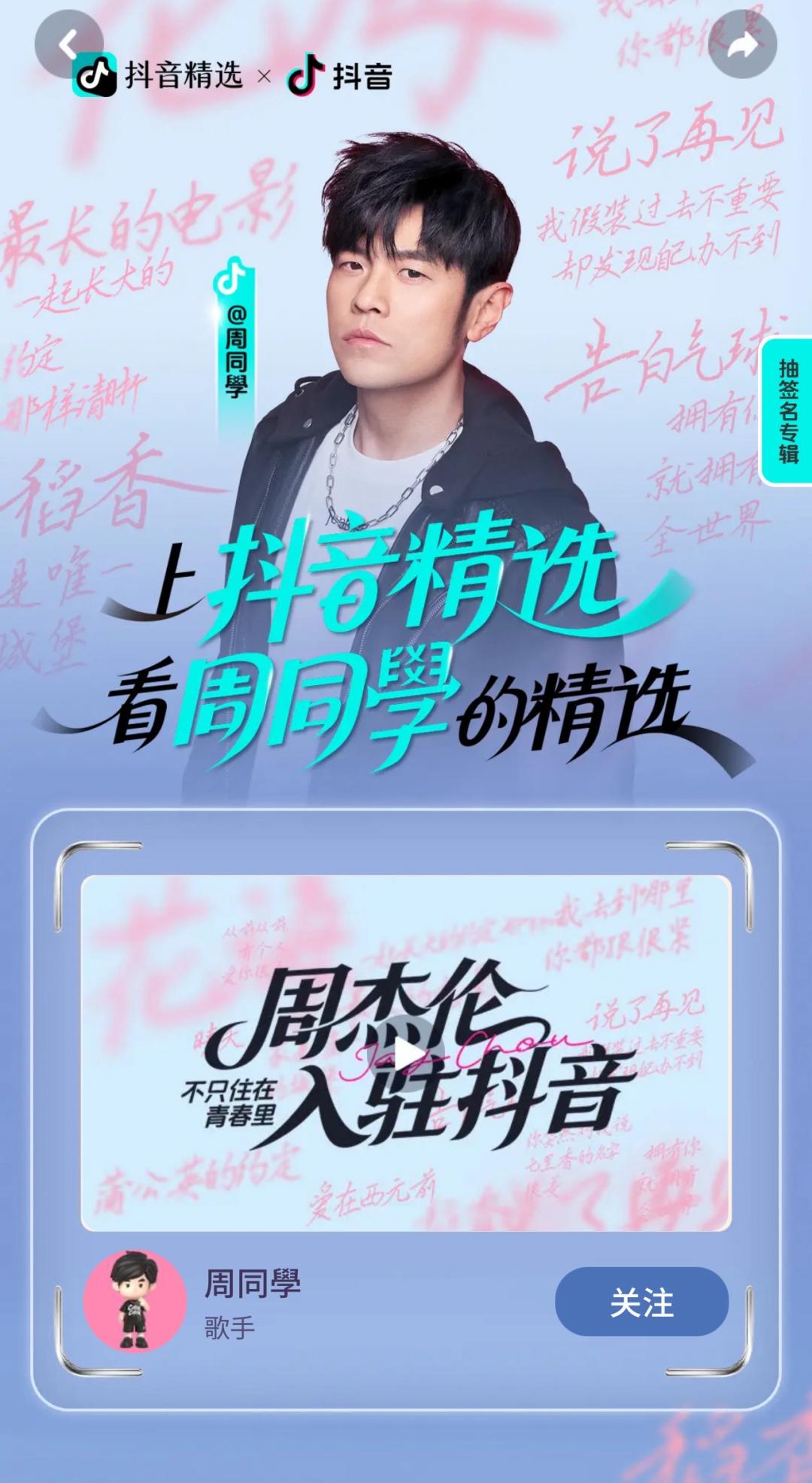 7月11日,周杰倫入駐抖音24小時漲粉千萬,發佈的第一條視頻點贊超過1500萬,國民級歌手的影響力在抖音的溢出力可見一斑。