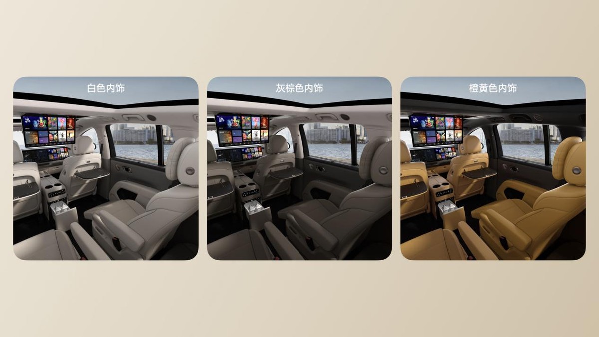 理想i8提供三種內飾顏色選擇,白色內飾,搭配白色方向盤和白色頂棚;灰棕色內飾,搭配棕色方向盤和白色頂棚;橙黃色內飾,搭配深灰色方向盤和黑色頂棚。三種內飾顏色均可免費選擇,滿足不同用户的個性化需求。