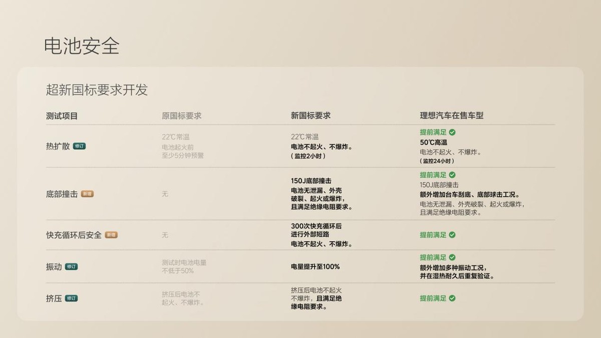 理想i8搭載的5C電池具備遠超新國標的安全性能,已通過包括泡水、雷擊、槍擊、高温、冰凍等多項極限工況測試,安全表現經得起嚴苛考驗。