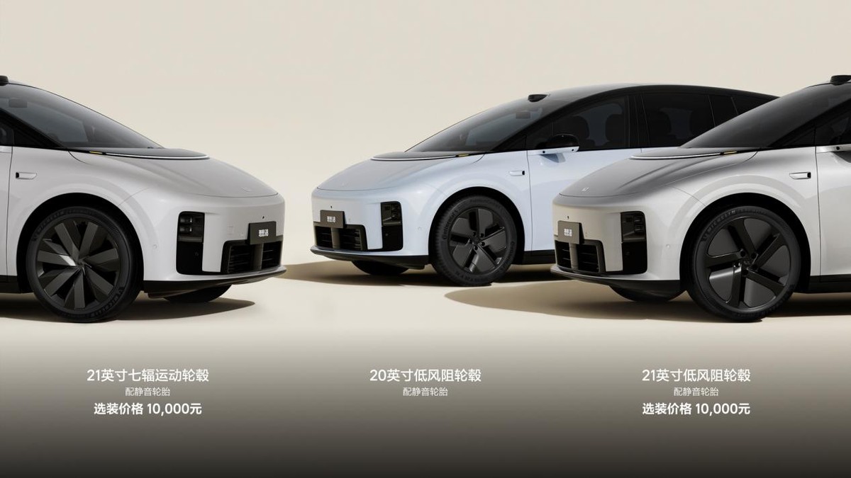 輪轂搭配方面,理想i8標配20英寸低風阻輪轂,另外還有兩款選裝的21英寸輪轂,價格10,000元,選裝輪轂均匹配米其林靜音輪胎,用户可根據自己喜好自由選擇。