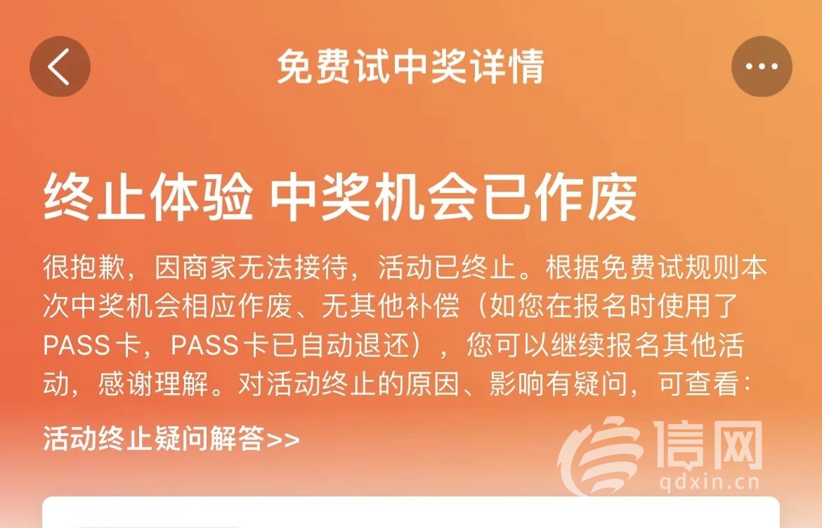 免費試中獎詳情(來源:受訪者)信網7月31日訊 “本以為是福利,沒想到是‘套路’。”近日,杭州市民王先生在社交平台上發佈了一則帖子引發網友關注,他在大眾點評參與的免費體驗活動,到店後商家不僅拒絕接待,還強行核銷其手機券碼。信網(熱線0532-80889431)調查發現,從線上抽獎、到線下促銷,“0元購”不兑現已成為橫跨多場景的消費痛點,看似“天上掉餡餅”的福利背後,藏着不少損害消費者權益的“暗礁”。大眾點評方面表示,商家在平台可自主報名參與免費試活動,其活動既給消費者謀了福利,也幫助商家獲得曝光與流量,若商家因自身原因致中獎名額失效,平台核實後會予以處罰。