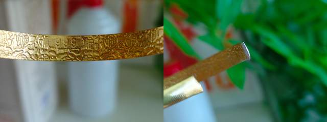 此外該款黃色手環用剪刀能夠輕鬆剪開,斷口處為白色材質,根本不是黃金材質。