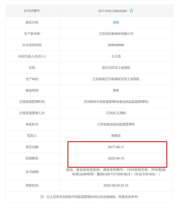 那麼酒的品質如何呢?看到粗劣的包裝和酒瓶做工後,值接Talk不敢品嚐,於是查詢了背後公司江蘇成功宴酒業有限公司的相關信息。