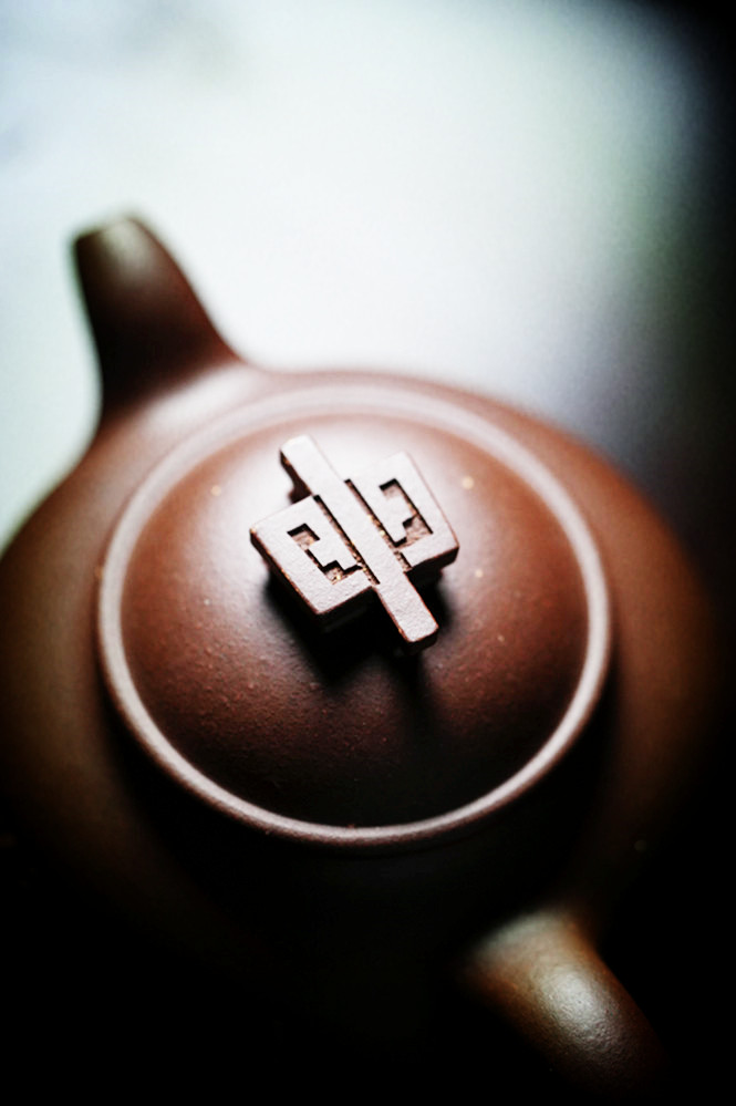 壺嘴與壺把的黃金比例,暗合《考工記》“輪輻三十,以象日月”的營造法則。特別設計的壺嘴按壓面,將“執器飲茶”的日常動作昇華為“道器合一”的生活儀式。壺鈕平視如太和殿的廡殿頂輪廓,俯觀則化為篆書“中”字,細看其中暗藏“北”字軸線。當茶水傾注時,水流沿陰陽刻線盤旋而下,恰似中軸線“前朝後市,左祖右社”的空間敍事。