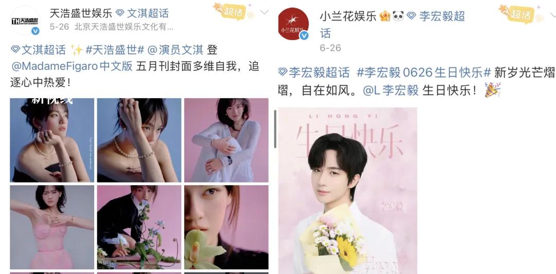 圖源:天浩盛世、小蘭花娛樂官方微博