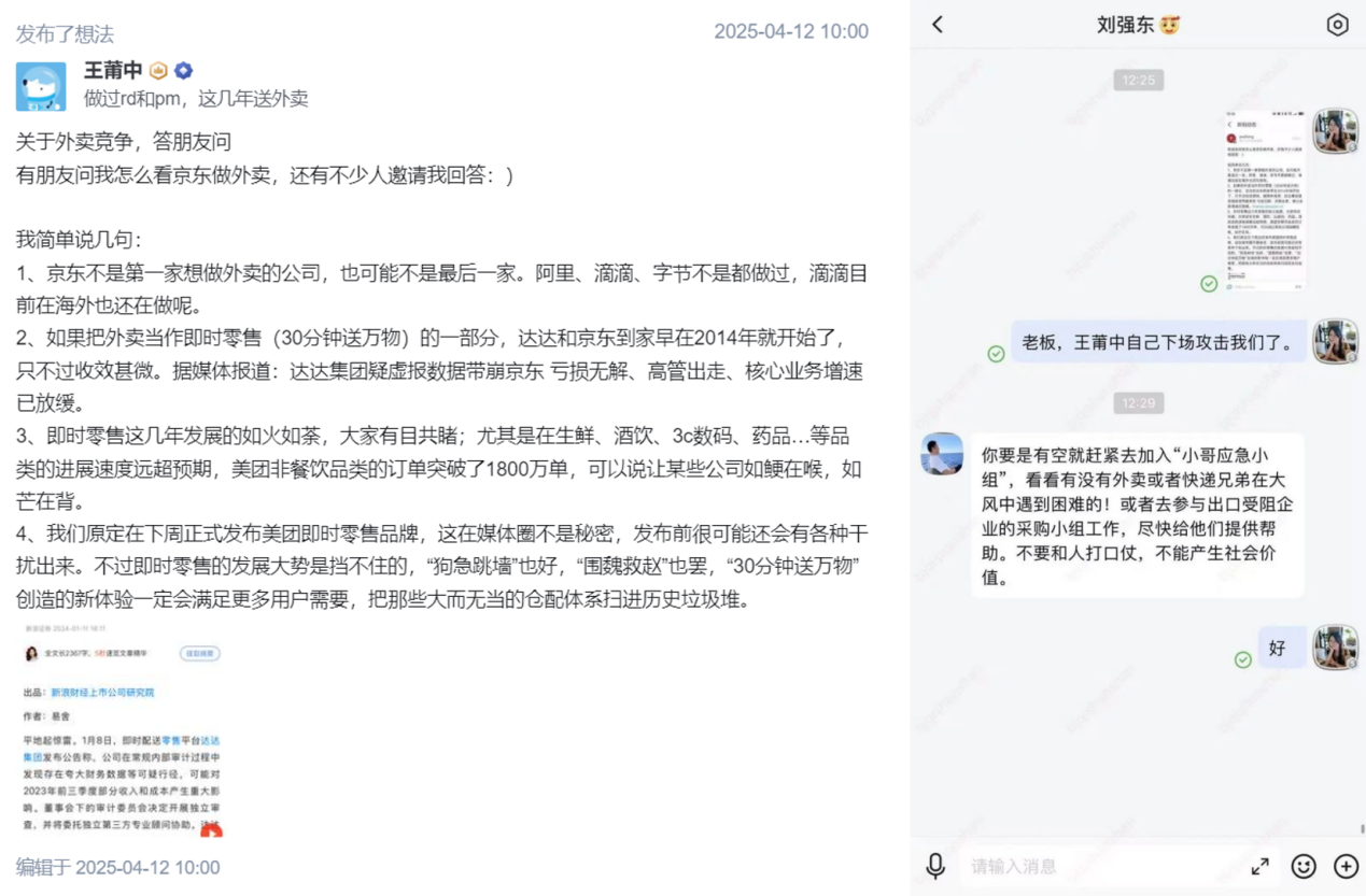 面對京東的一系列操作,王莆中發起了反擊。