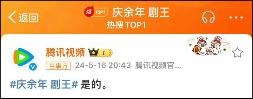《慶餘年2》上線首日,創下平台開播首日曆史最高熱度值。隨後,“慶餘年劇王”的話題登上熱搜,騰訊視頻毫不謙虛地回應“是的”。