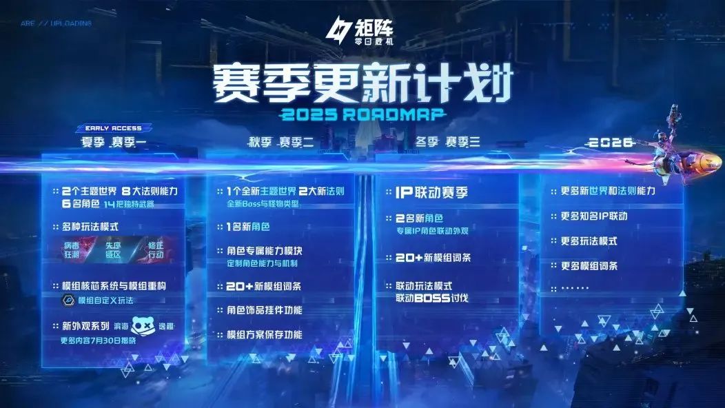 目前製作組準備採用的長線策略,是和《流放之路2》類似的賽季制。新賽季到來時,製作組會推出大型更新,在保留肉鴿和刷寶玩法基底的同時,藉助不同的局內與局外培養玩法,形成每個賽季的多樣性。