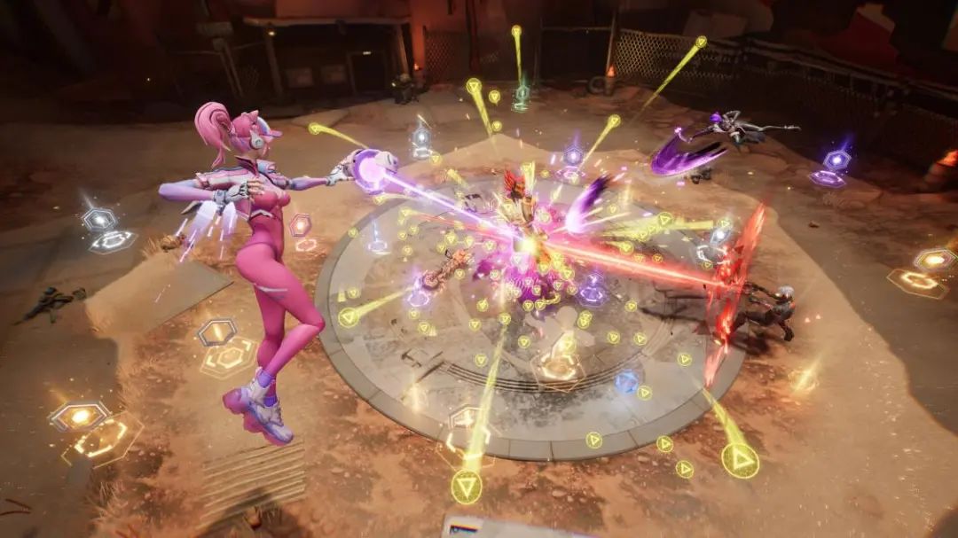 而我的腱鞘炎之所以是“差點”復發,也是因為《矩陣》並不強求瞄準技術。目前《矩陣》的6位角色裏,有人玩炸彈不用刻意瞄準,有人玩炮塔基本不需要瞄準,還有2位角色攻擊方式自帶子彈追蹤鎖頭。