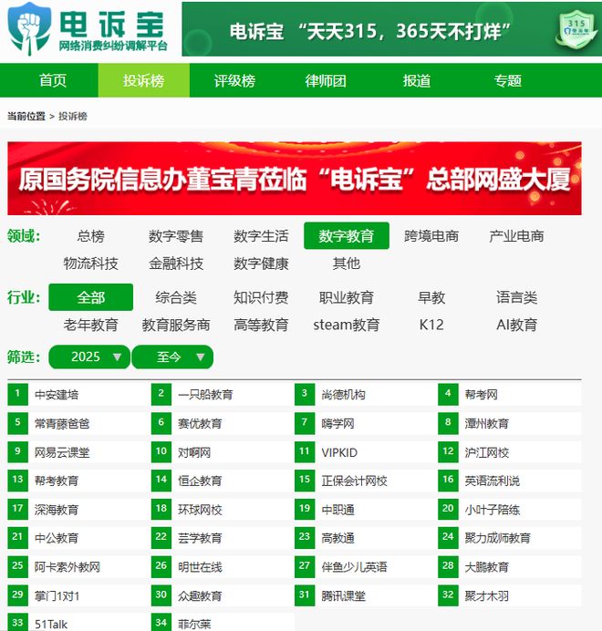2025年(上)數字教育典型投訴案例發佈 常青藤爸爸幫考網尚德機構等被點名