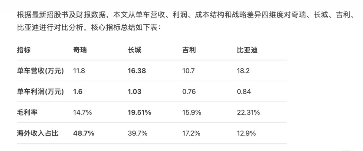 奇瑞單車營收、毛利率都打不長城,可為何單車利潤比長城要高?