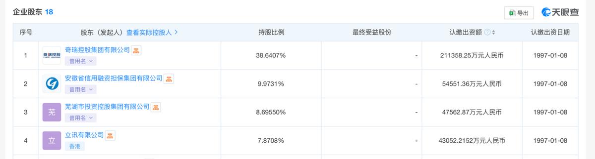 過去奇瑞IPO失敗,原因有很多,有股權爭議,有混改的影響,總之,IPO這條路走得不容易。天眼查APP股權信息顯示,當前奇瑞控股持股奇瑞汽車38.6%。