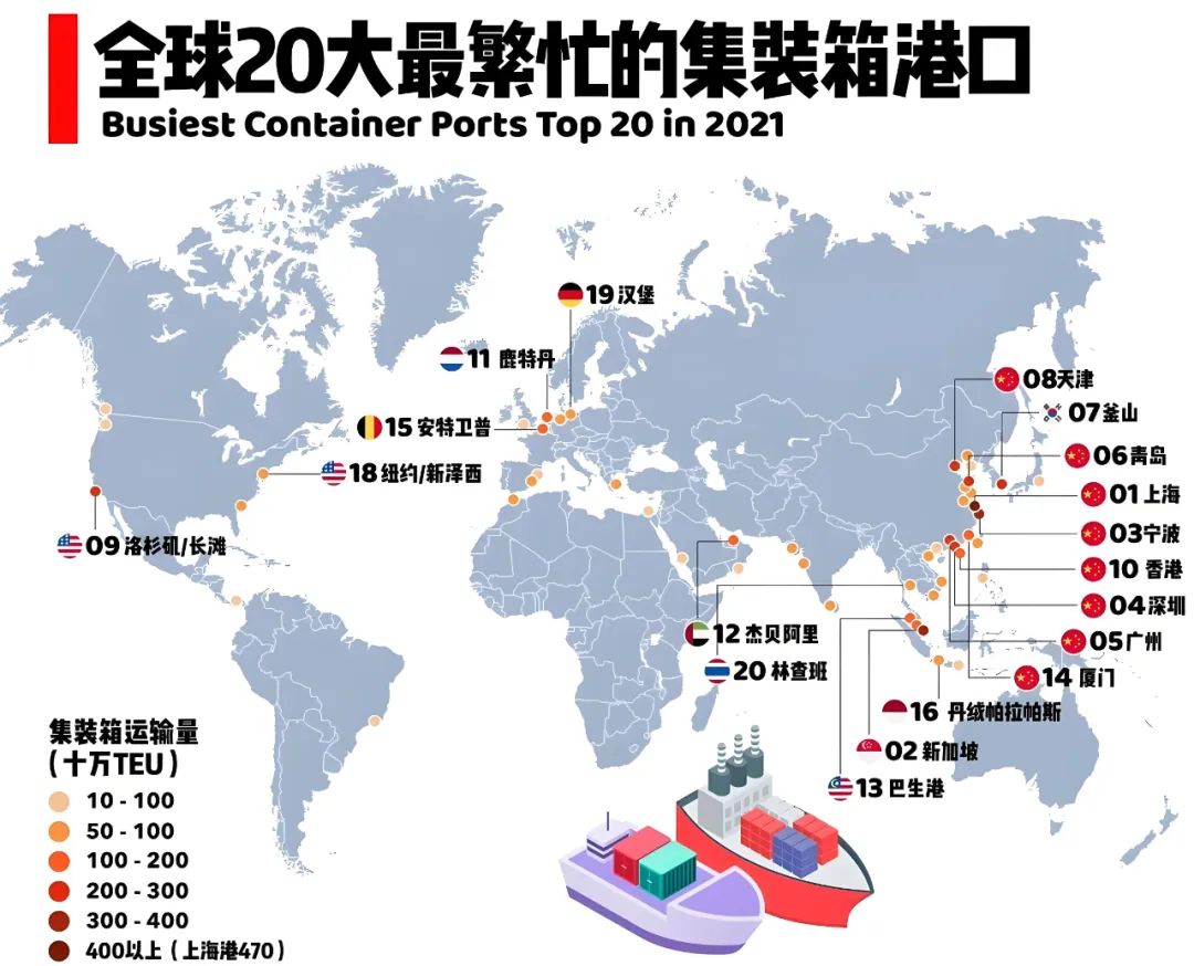 這從全球5000箱以上集裝箱貨船熱力圖就可以看出,我國海域是世界上集裝箱海運最繁忙的地區。
