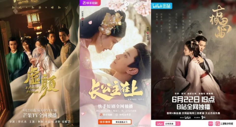 如果稍加追溯橫短並不太長的歷史,可以發現不論是初代爆款《虛顏》《念念無明》,還是快手星芒短劇的《長公主在上》,以及為B站打響短劇招牌的《古相思曲》,或是騰訊視頻“十分劇場”分賬2700萬的《執筆》,無一例外都是女頻古偶題材。