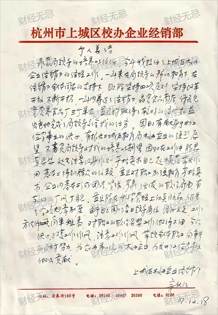 在宗慶後1987年的工作總結裏可以看到,宗慶後在這一年做了三件事,其中一件就是籌建了杭州保靈兒童營養食品廠,而這是娃哈哈的前身。