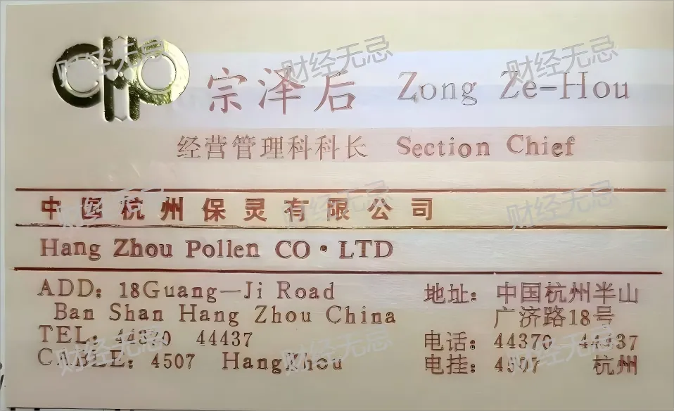 宗慶後的弟弟宗澤後,當時應聘進入了杭州保靈有限公司當業務員,還來任經營管理科科長。