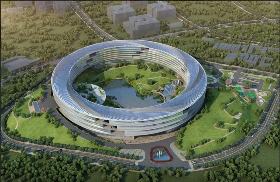 進入7月,山城重慶温度飆升至40℃。在兩江新區禮嘉,數十台挖掘機和卡車正在忙碌穿梭——它們要在這個佔地10.3萬平方米的土地上,建造起一個建築面積達32.9萬平方米,形似Apple Campus 2環形造型的研發中心。