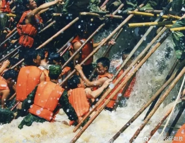 27年前,隨着一聲令下“全部上堤”,年輕的戰士們衝進洪水,用血肉之軀去抵擋災難,站在洪水中沒日沒夜地築堤修壩,將軍流着淚説:“我們的戰士是最好的”……17年前,電視裏的政委對着戰士們喊:“同志們,黨和人民考驗我們的時候到了”,然後15名勇士從高空飛躍而下……