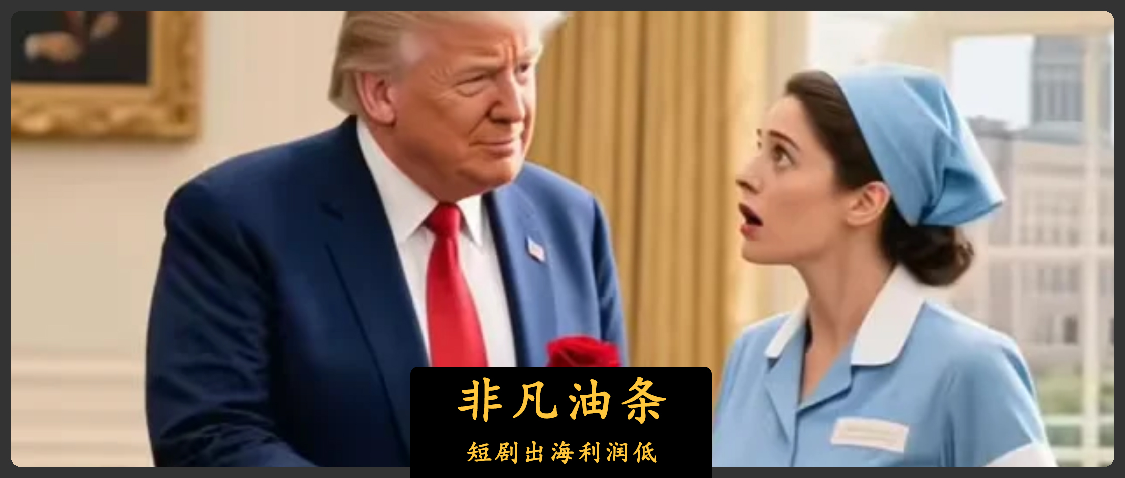 前段時間,網上流傳一部名為《特朗普愛上在白宮當保潔的我》的短劇,相關視頻甚至在微博上被某些知名媒體轉發,配上“不少網友一邊罵着劇情無腦一邊選擇付費追劇”、“短短三個月內該劇收入高達1.5億美元”等誇張文案。