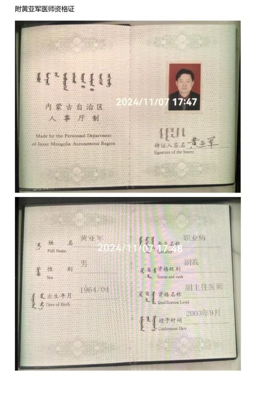 可是,泰陽藥業向魯網•民生幫辦記者出示的黃亞軍醫師資格證顯示,黃亞軍副主任醫師的專業名稱為“職業病”。
