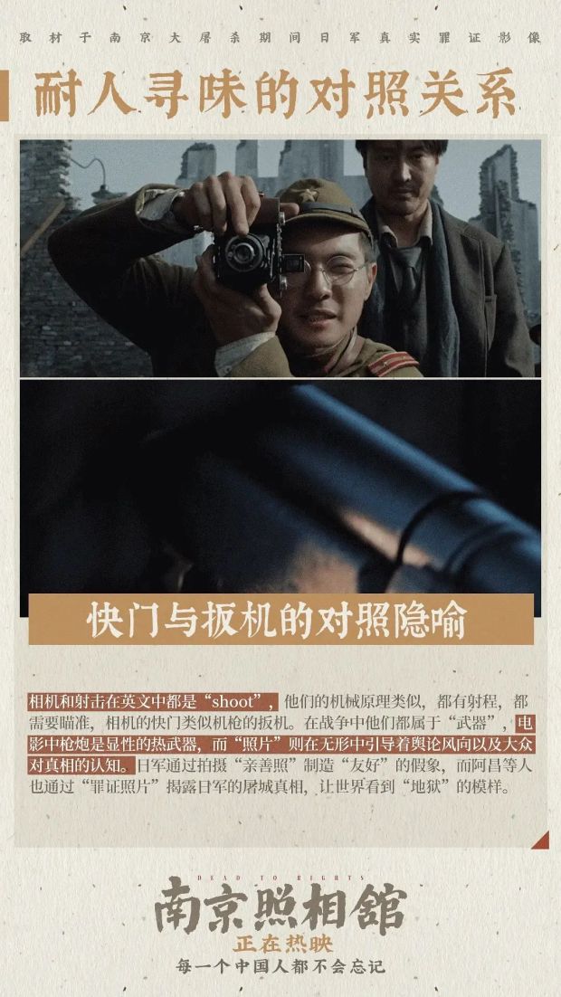 **換句話説,中立本身所代表的並非無立場,而恰恰是可以承載任何立場,可以為任何人所用。**正如《南京照相館》所揭示的,照片既可以用來掩蓋罪行,偽造“中日親善”,也可以成為歷史審判的珍貴罪證。而電影既可以宣揚庸俗的“人性論”、和稀泥式的“反戰論”以篡改歷史、麻痹大眾的頭腦,也可以正本清源,正視歷史以團結人民、警示未來。