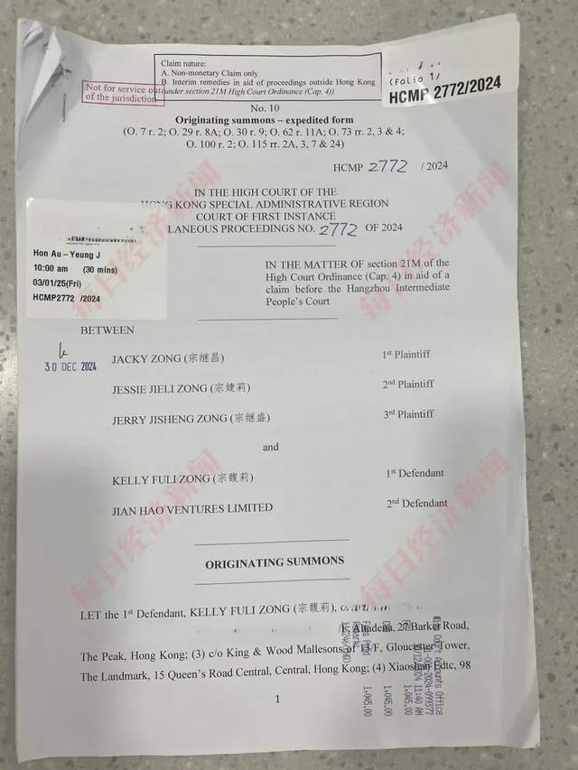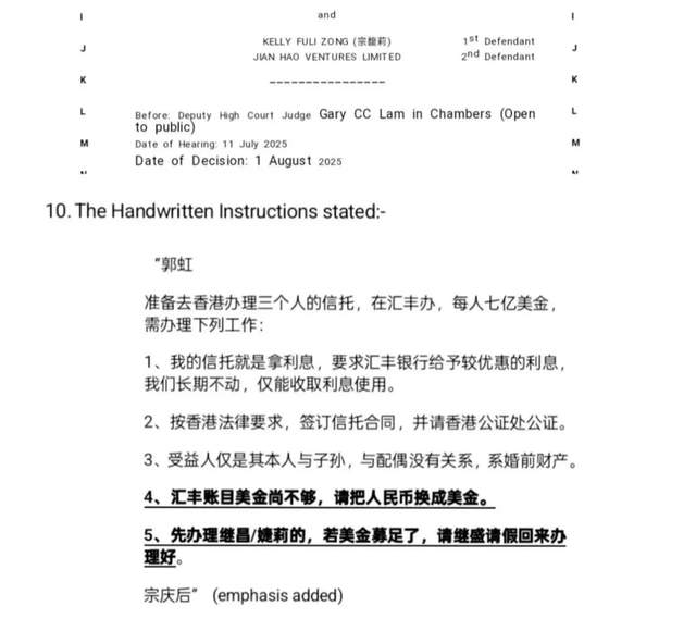 香港高院官網公佈宗慶後遺產糾紛案最新進展,現將首輪庭審判決書及相關信息整理如下: