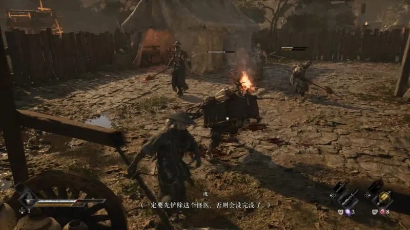 可以先逐個處決陣中的師弟們,最後再直面大師兄。這個階段的招式傷害都不算高,好好應對白光攻擊就能大幅削減殺氣,屬於比較輕鬆便可擊殺。