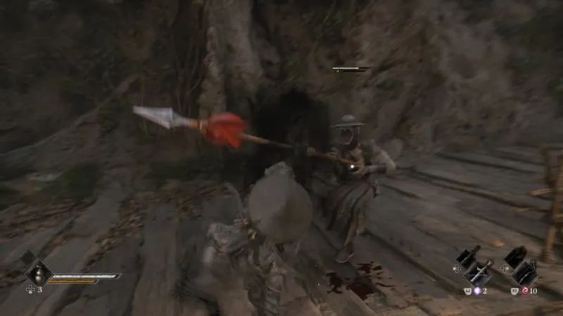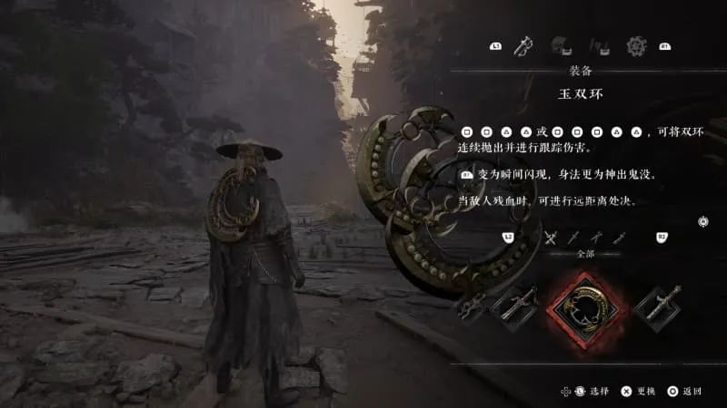 另外,《影之刃零》還設置了名為“影之武裝”的輔助武器,按下右扳機鍵 R2 即可直接釋放。其中包含負責遠程攻擊的弓箭、能砸開木板隱藏通路的巨錘、可以劈開鎖鏈的大斧,功能性道具都被集成於此。