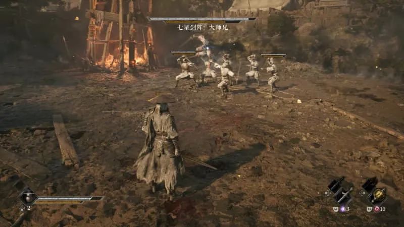如果上述動作系統和豐富武器,還不能讓你眼前一亮,當七星劍陣作為 BOSS 出現在對面,相信每位中國玩家都會高呼:就是這個味!多人 BOSS 並非什麼稀罕物,但 7 個人又會走陣法,羣體 AI 還互相支援,甚至能搭人牆送陣眼快速突擊,這架勢我是真沒見過啊!