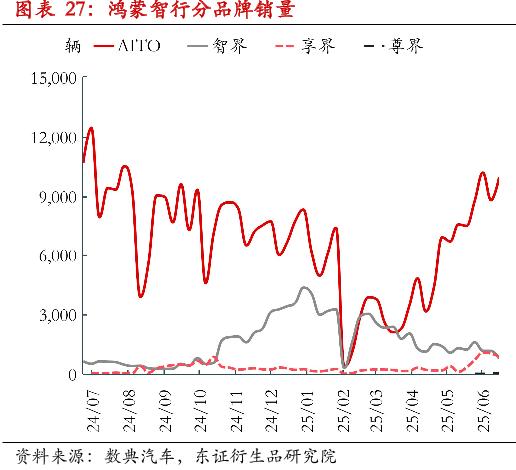 鴻蒙系7月交付量47752輛,環比下跌9%。張宇通過分析智界R7、問界M8的銷量走勢得出結論,“鴻蒙系內部車型也存在競爭”。