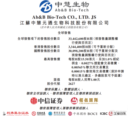 保薦人:中信證券、招銀國際;(這兩家保薦人近兩年保薦的項目勝率較高)