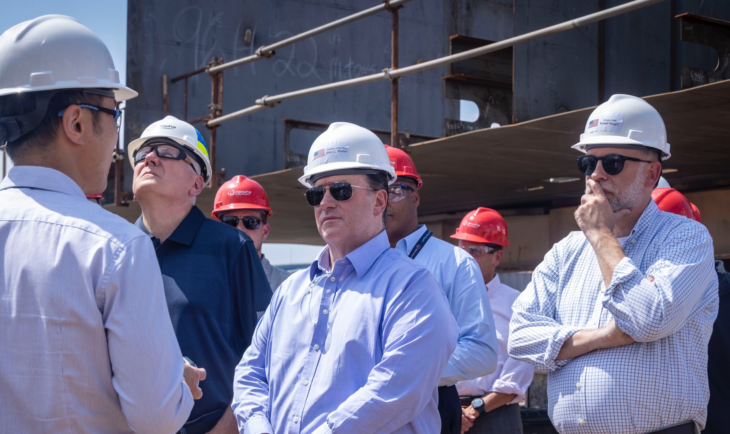 賓夕法尼亞州費城訊——週三,海軍部長約翰·費蘭自3月下旬執掌海軍部以來,第12次造訪船廠,此次他參觀了位於特拉華河畔的韓華費城造船廠。