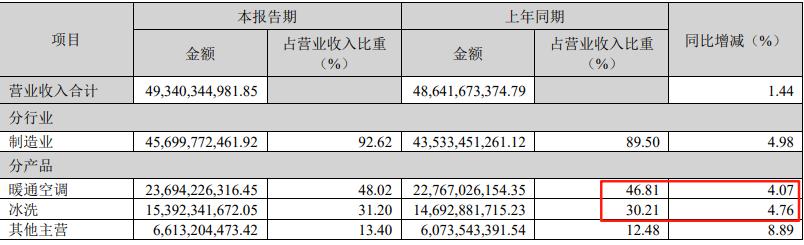 國內業務掉隊的主要原因,還是產品結構的問題,相對海爾、美的等同行來講,有點單一了。具體來説,海信的暖通空調,冰洗兩項產品佔總營收的比重為79.22%。