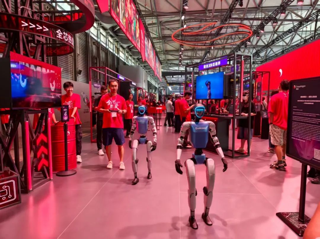 在智能眼鏡展台旁邊,工作人員操作着兩台宇樹的 G1 機器人產品,和前來參觀的人羣揮手打招呼。這並不是單純為了「作秀」。看起來呆萌的 G1 機器人身體裏,其實同樣用到了高通的芯片——IQ-9100。