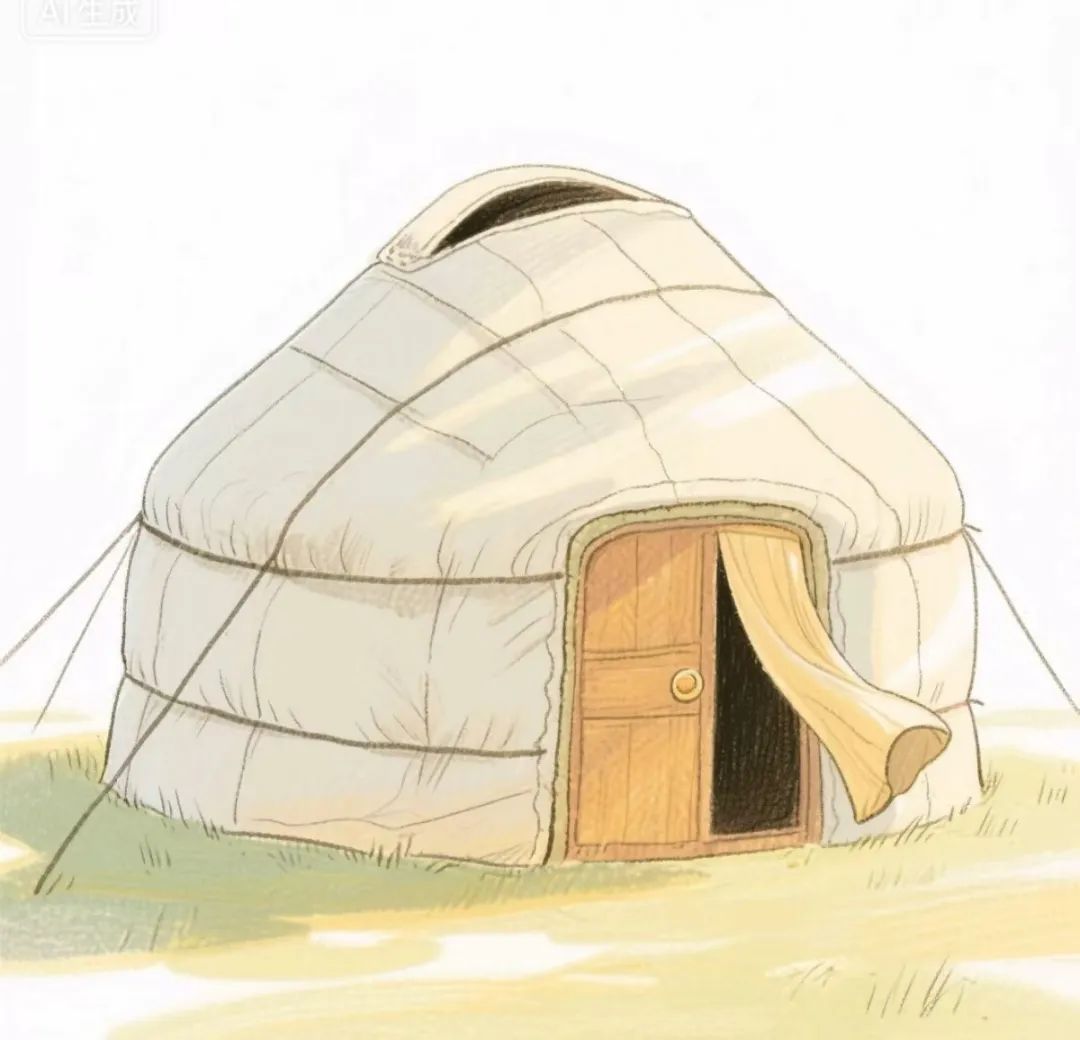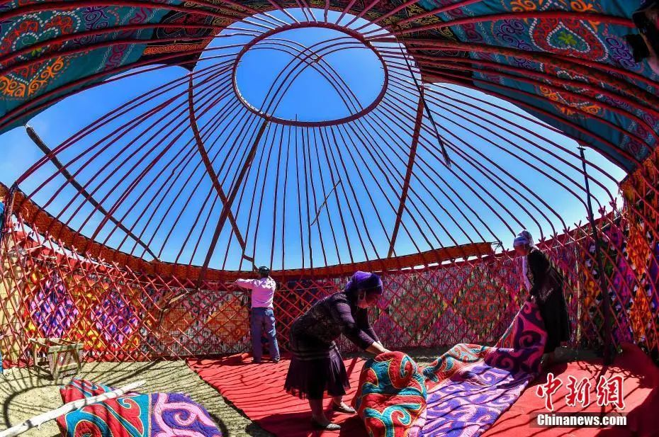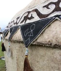 這些氈片厚實(可達2-3釐米)、堅韌、防風防雨,是遊牧家園真正的“牆壁”和“屋頂”,拆卸後捲起捆紮,便於駝馬馱運遷徙。