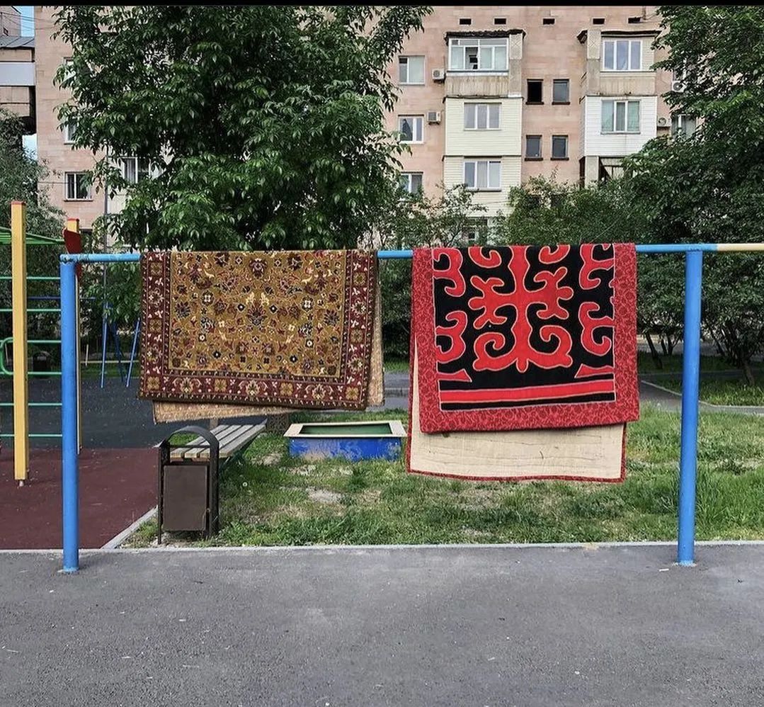 生活的“基底”, 在氈房內地面上鋪設多層毛氈毯(“斯爾馬克”),最底層是厚實的素色或簡單花紋的底氈,隔絕地氣寒濕;
