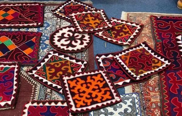 柯爾克孜族的毛氈毯,在色彩上就帶着高原的熾烈與生機。濃烈的紅、深邃的藍、明淨的白、活潑的綠,如帕米爾高原上澄澈的天空與盛開的野花般碰撞。
