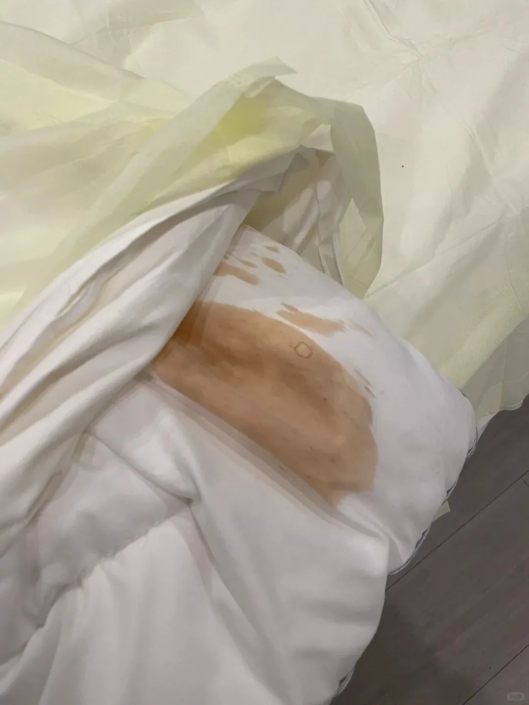 有網友就爆料,自己住酒店時,發現本應該是潔白的牀單下,隱約透露着暗紅色。當她掀開白牀單才發現,下面的褥子上是一灘早就幹掉的血跡。