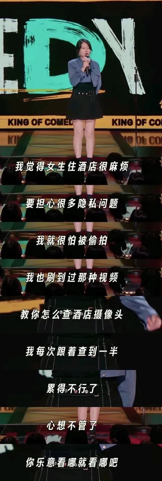 藝術來源生活。酒店裏無處不在的偷拍,也被脱口秀演員寫進了段子。查完電視,查插座,再查煙霧報警器,拿着手機滿屋掃描紅點,這心理負擔,比上班還累!