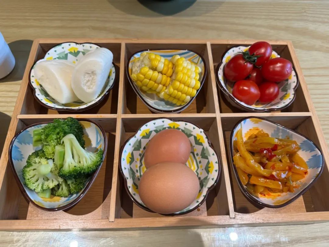 最讓人詫異的是,民宿的早餐風格都是一樣的。盤子變食盒,格子裏填的都是小饅頭、雞蛋、榨菜……這些微波爐加熱就能上桌的速凍小饅頭,真的是越看越糊弄。