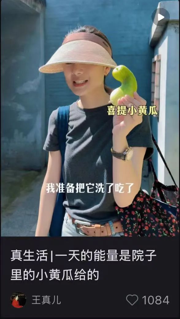 在另一條vlog裏,王真兒記錄了自己從摘黃瓜到吃完黃瓜的全過程,整個視頻將近兩分鐘。