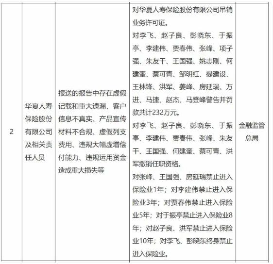 華夏人壽被吊銷業務許可證,原董事長終身禁業。