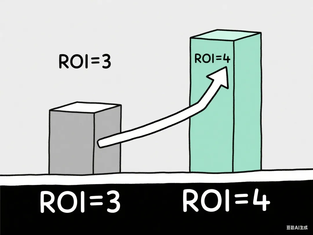 於是,同樣100塊的預算,帶來的銷售額可能就成了400,ROI直接從3提升到4。