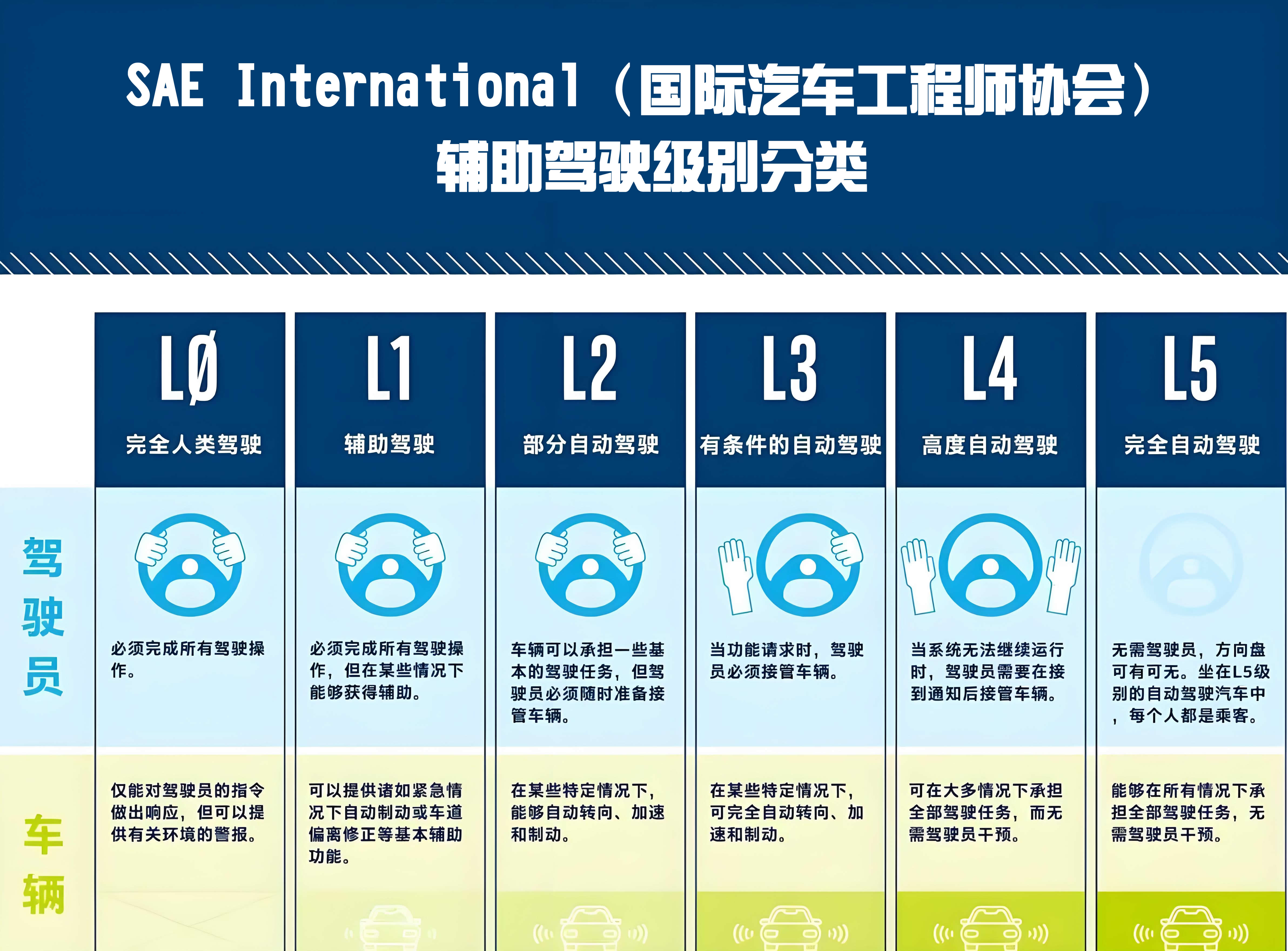 SAE International(國際汽車工程師協會)輔助駕駛級別分類