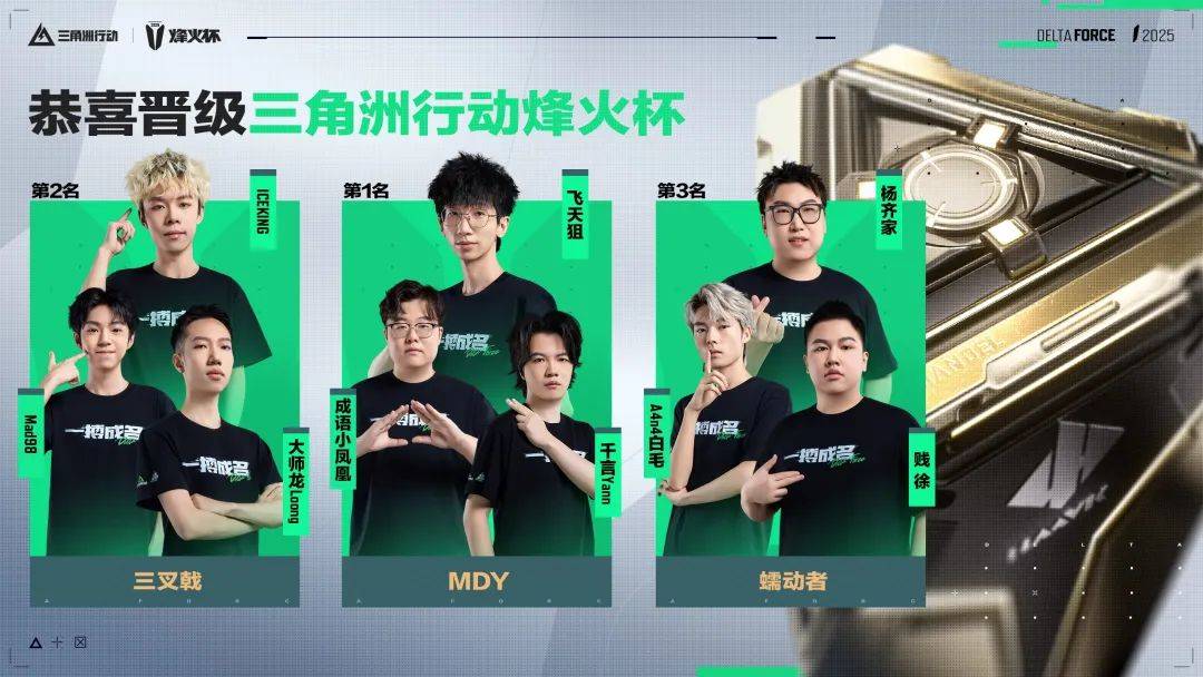 獲得本屆巔峯賽的前三名隊伍:MDY、三叉戟和蠕動者,將獲得直通首屆烽火盃的資格,真正站上與職業戰隊交鋒的舞台。
