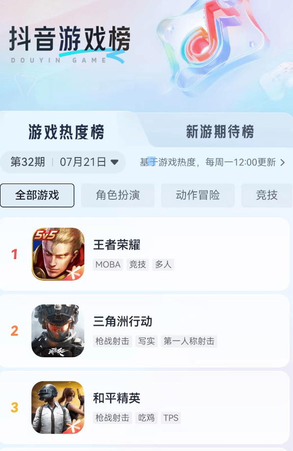 此外,自6月份以來,《三角洲行動》在抖音遊戲熱度榜上持續保持前一、二高位。