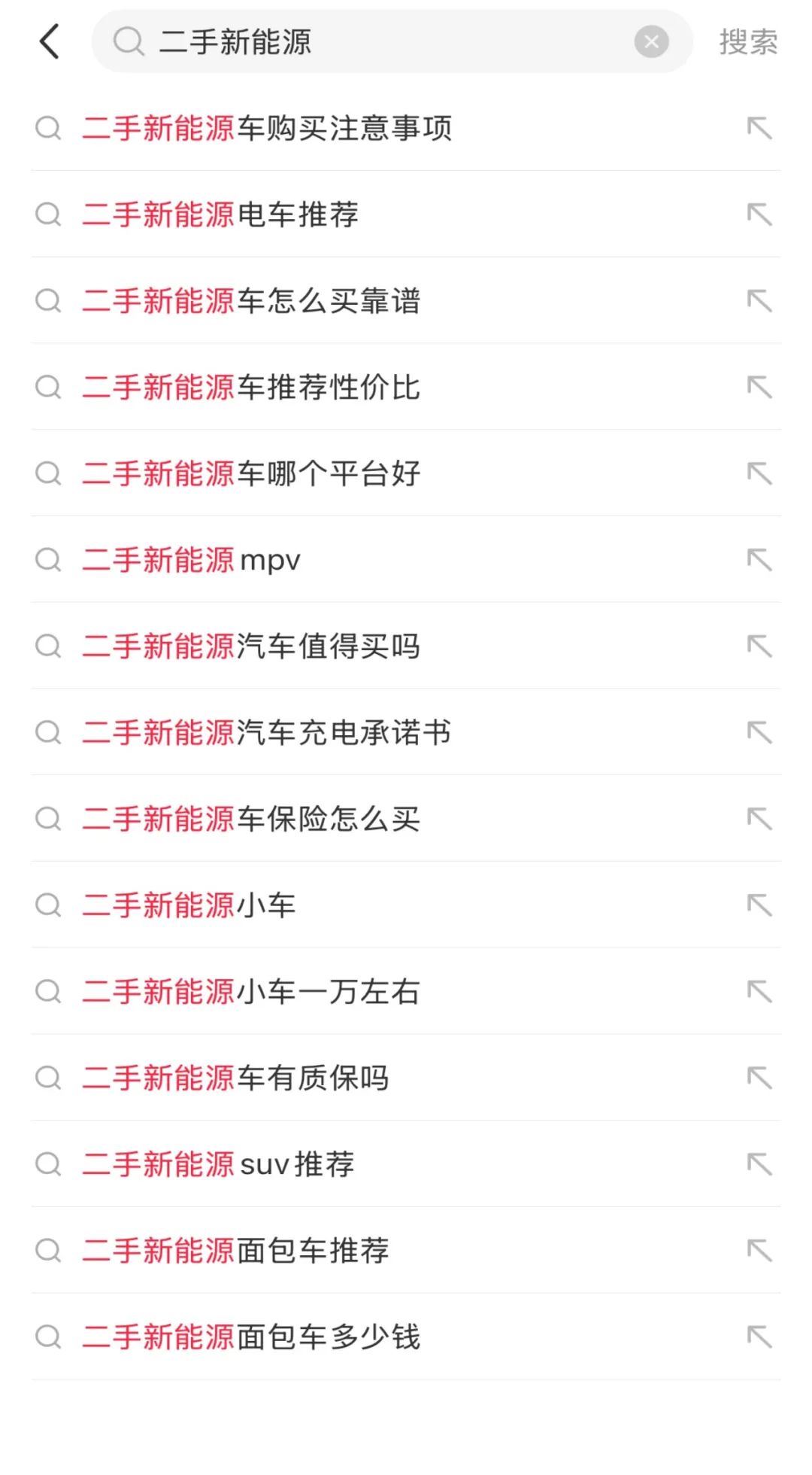 和卡拉體驗相同的網友不在少數。在小紅書搜索“二手新能源”,與之相關的詞條更是比比皆是。包括但不限於“二手新能源電車推薦”“二手新能源車購買注意事項”“二手新能源車怎麼買靠譜”等。