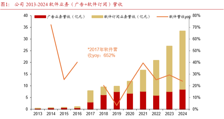 2022年底,美圖開始在生成式AI方向上持續投入,從最初的“AI影像”功能切入,逐步構建起覆蓋AI圖片、AI視頻、AI設計等多個場景的產品矩陣。2023年,美圖收入同比增長近三成,實現歸母淨利潤大幅回正;2024年繼續保持增長,利潤規模突破5億元。產品端的變化帶動了業務結構優化,AI轉型驅動軟件訂閲收入增長,成為公司整體向上的關鍵推動力。