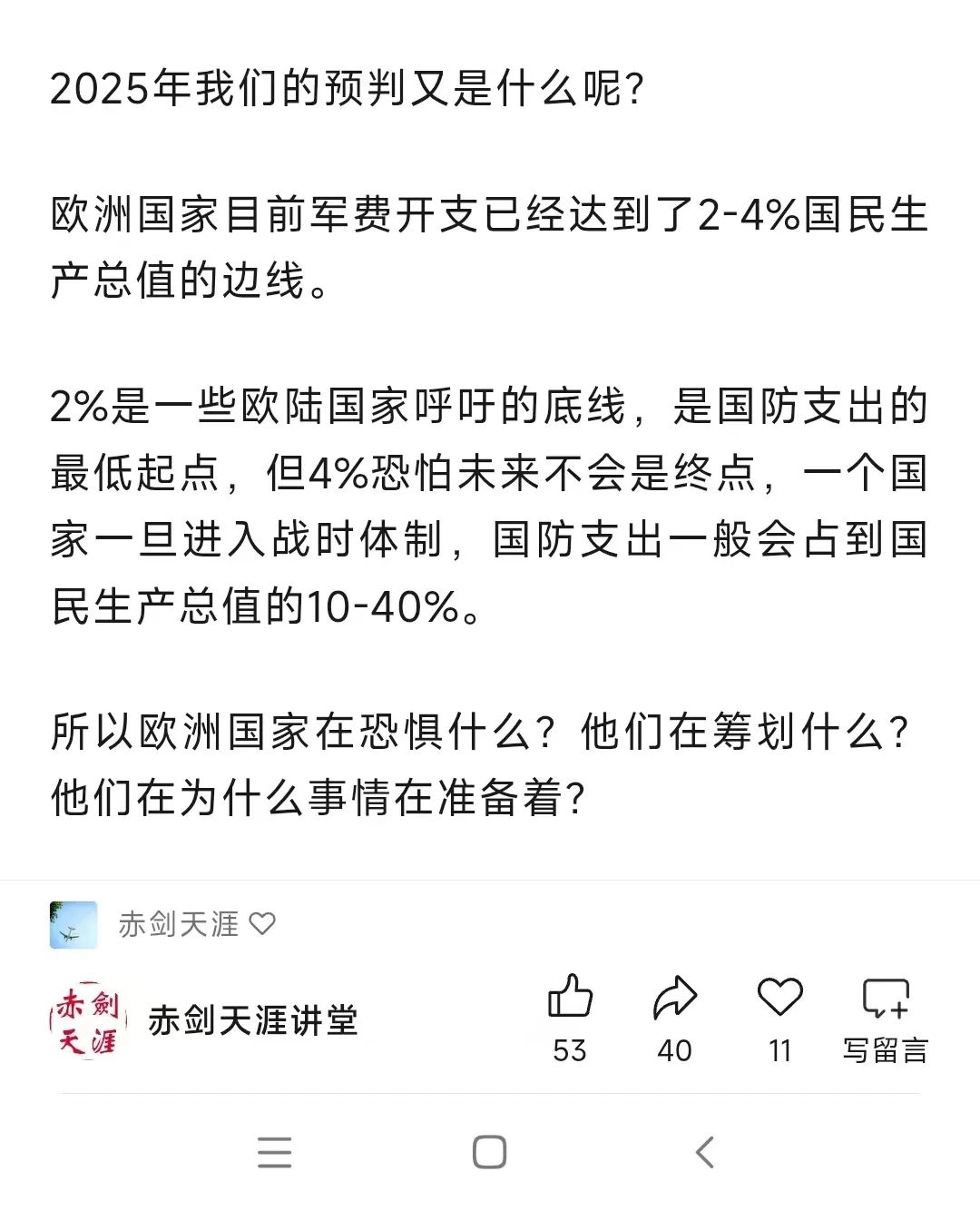 我們盯外軍盯得很緊,基本他們有些什麼風吹草動,他們想搞什麼意圖,當時我們就能分析判斷出來,所以上面提到的4%的軍費比例,其實我們在2022年底就有預見了,並且在2025年的時候又做了進一步闡述。