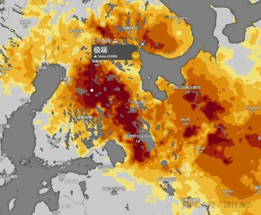 而在遙遠的歐洲,連氣候濕潤的芬蘭卡亞尼也被報告為“極端乾旱區”,這是幾十年來少有的情況。